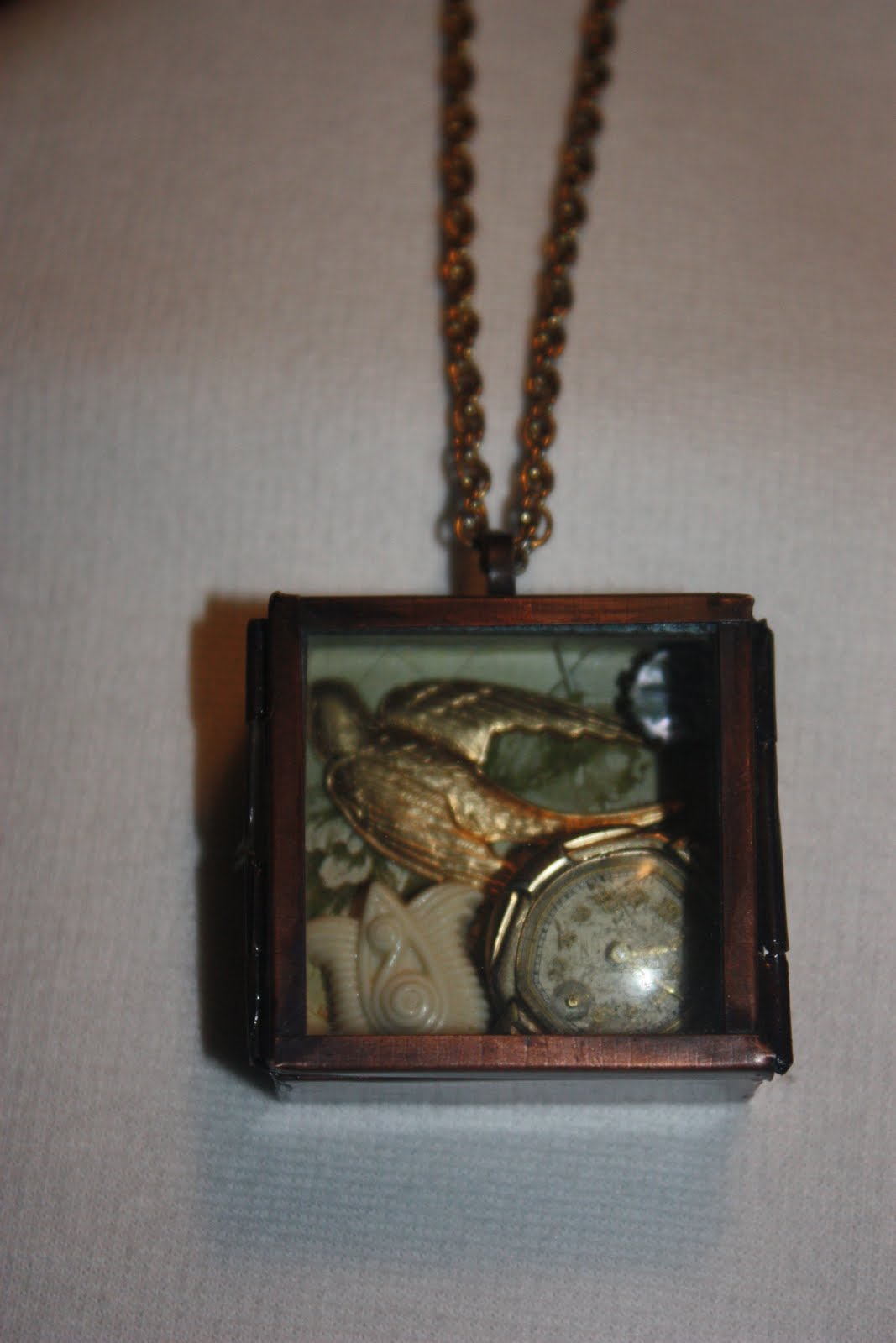 Excuse our enthusiasm, but we're over the moon about these shadowbox pendants we've been making. Each is a little over an inch square. One-of-a-kind (of course!) little works of art, these wearable assemblages draw a lot of attention. We're quite proud of them.